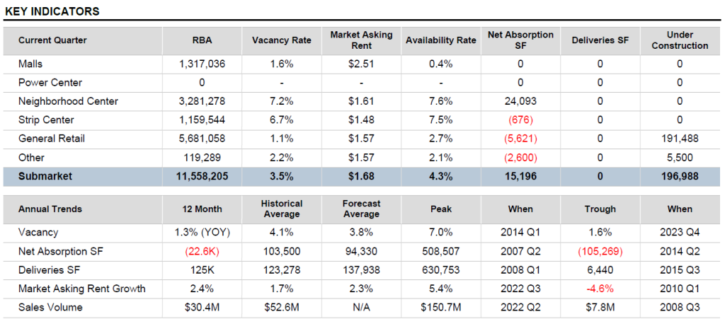 Despite this, the submarket delivered 125,000 square feet of new retail space, contributing to the current supply-demand imbalance .